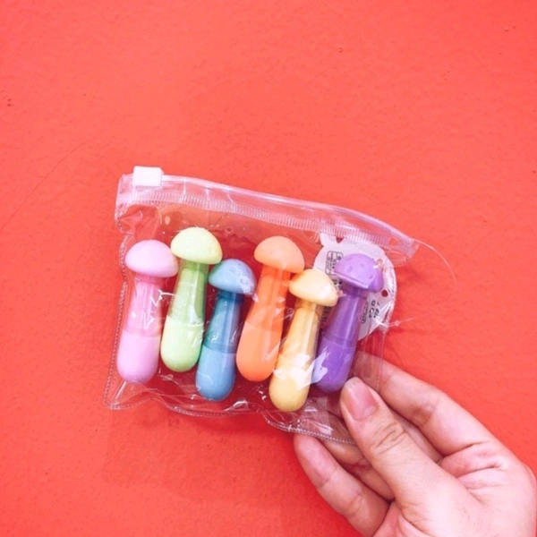 6 in 1 Cute Mushroom Shaped Highlighter Pens MC136
