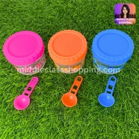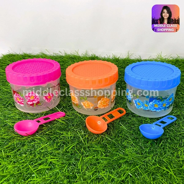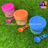Cute Mini Transparent Floral Print Kitchen Storage Containers With Spoon (B7.2×H6.2cms) MC450