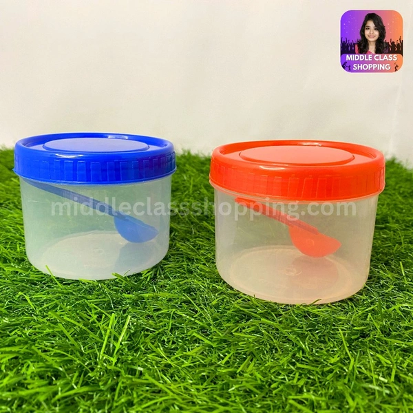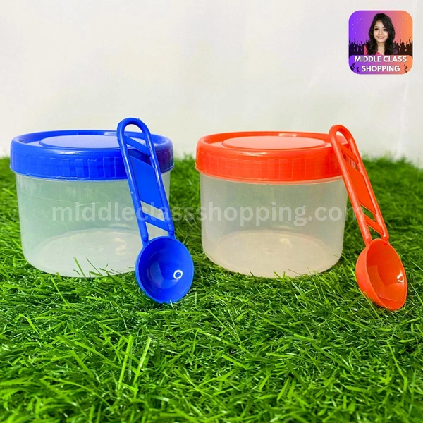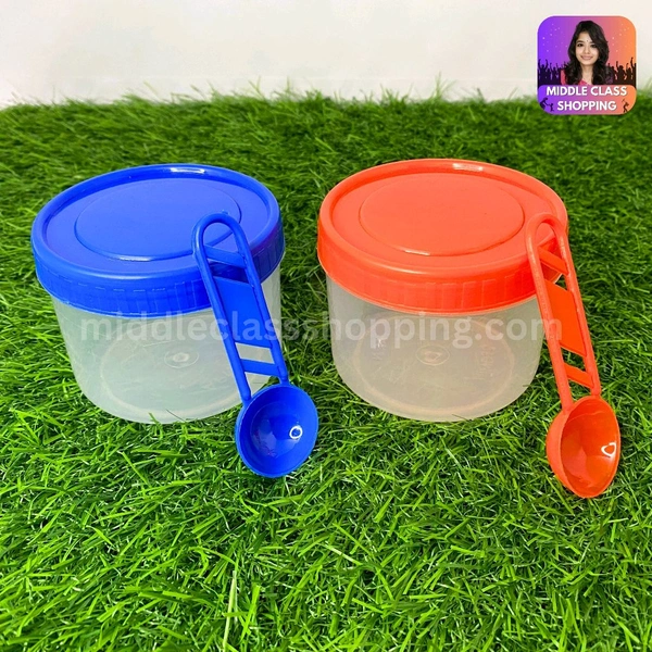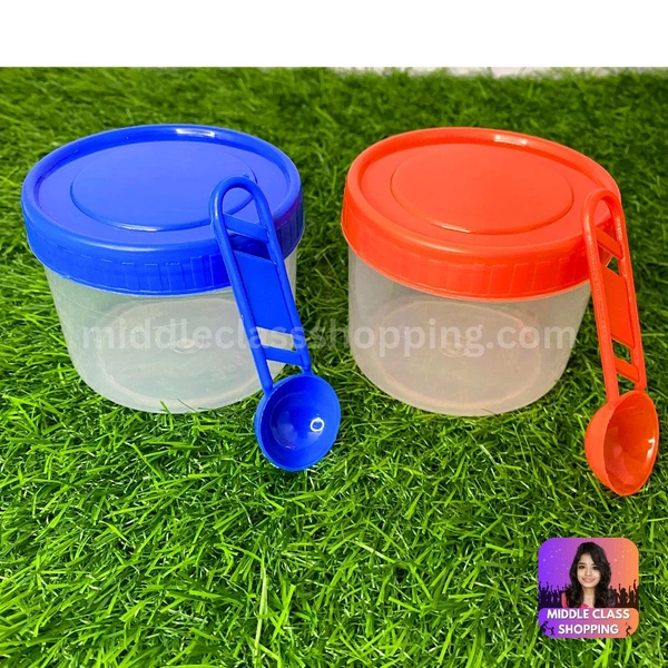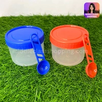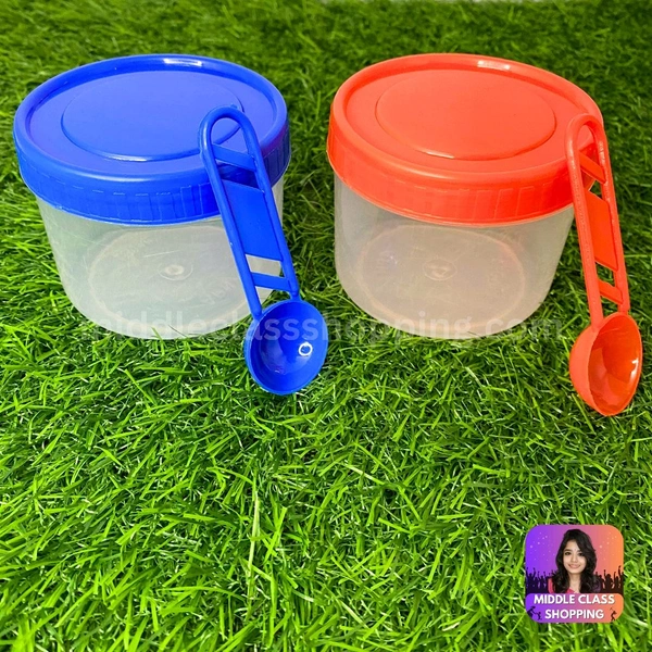 Cute Mini Transparent Kitchen Storage Containers With Solid Color Caps With Spoon (B7.3×H6.4cms) MC449