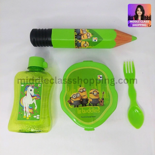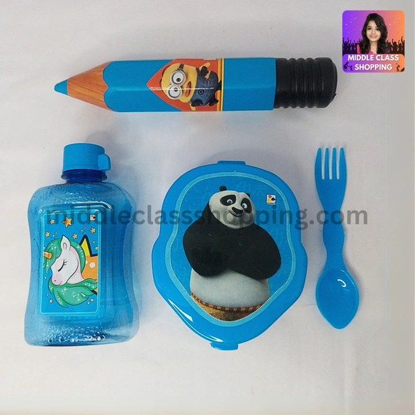 High Quality 3 in 1 Kids Special Combo Gift Set With Pencil Box, Snacks or Tiffin Box With Spoon And Water Bottle MC478