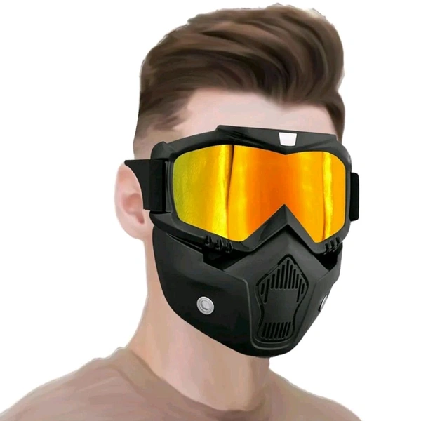 High Quality Protective Goggle With Mask For Comfort Ride With Windproof And Soft Foam Pads (Yellow) MC132