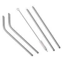 High Quality Reusable 5 in 1 Stainless Steel Straw Set With Cleaning Brush MC730