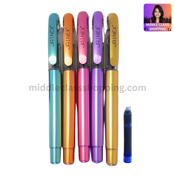 Jainex Premium Mettalic Finish Fountain Pen With Catridge Ink MC194