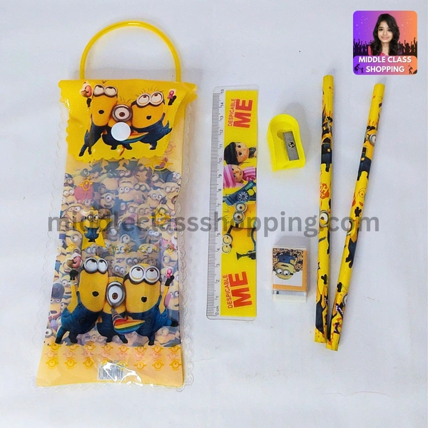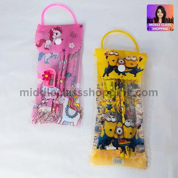 Kids Cute Gift Pouch With 2 Pencils, 1 Sharpner, 1 Eraser And 1 Scale MC479