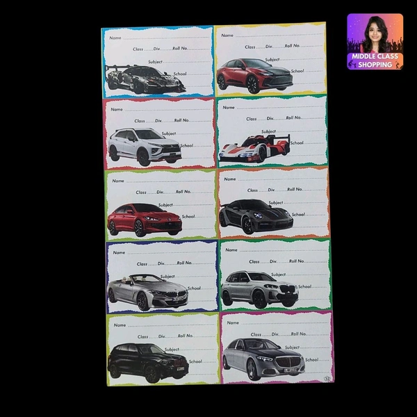 Kids Favorite Car Printed School Notebook Label Stickers (10pcs) MC722