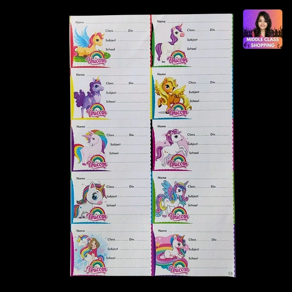 Kids Favorite Unicorn Cartoon School Notebook Label Stickers (10pcs) MC718