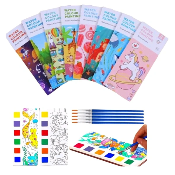 Kids Favorite Water Colour Painting Books With 12 Coloring Sheets And Free Brush Included MC834