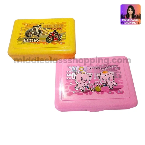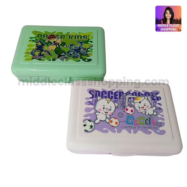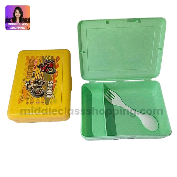 Kids Favourite High Quality Big Sized Lunch Or Snacks Box With 2 Divisions And Spoon (15.8×11.3cms) MC605