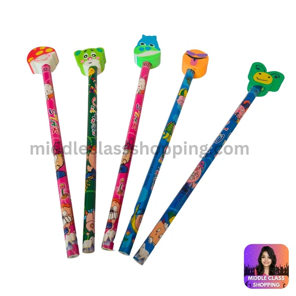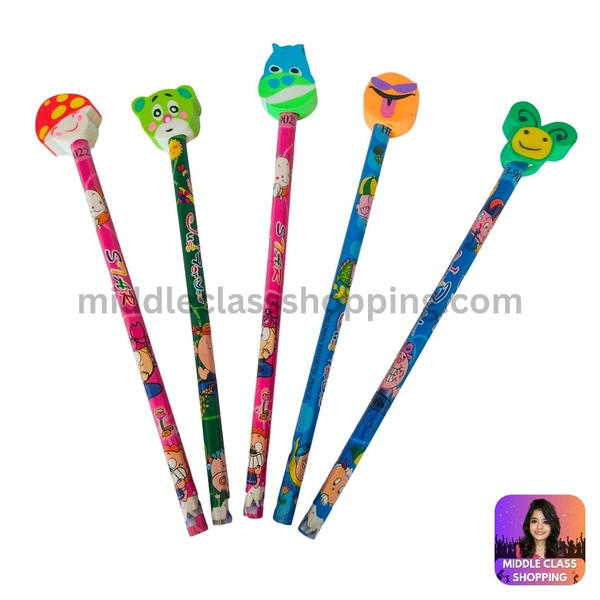 Kids Favourite Cute Pencil With Top Cartoon Erasers MC416