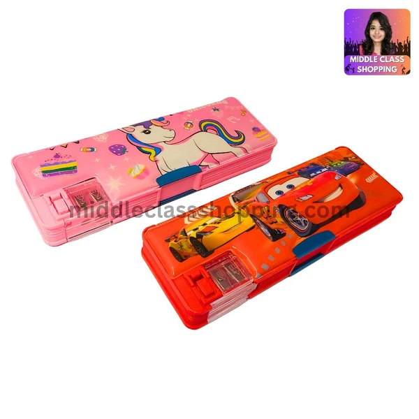 Premium Big Sized Double Sided Pencil Box With Double Sharpner And Magnet Clips (23×8cms) MC225