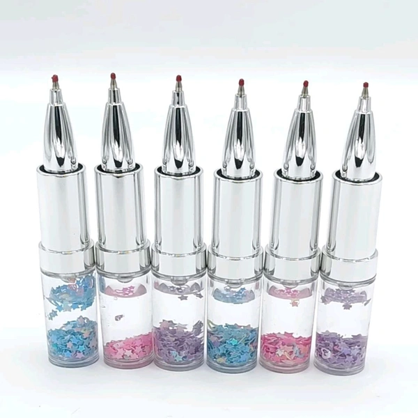 Premium Cute Lipstick Shaped Pen With Floating Glitters MC469