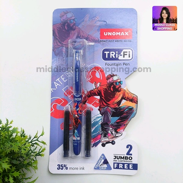 Premium Quality Unomax TriFi Skating Board Fountain Pen With Jumpo Ink 2 Catridges MC821