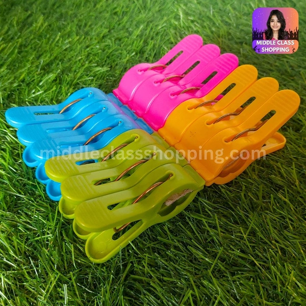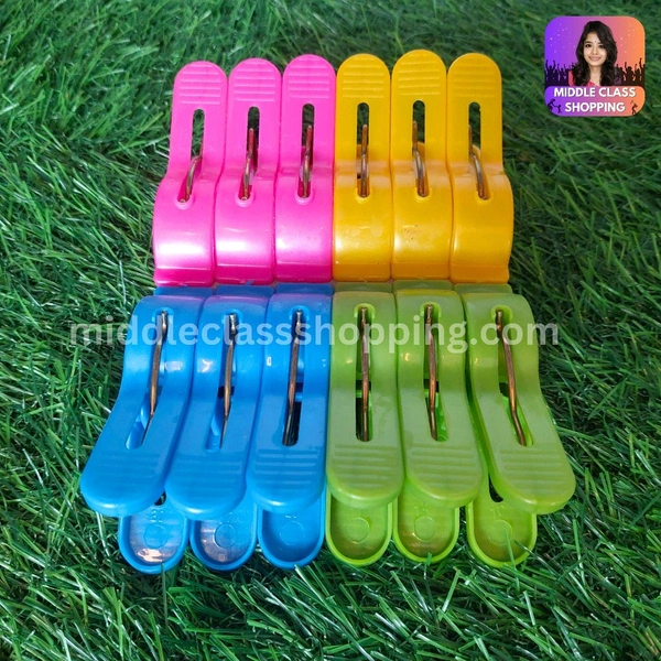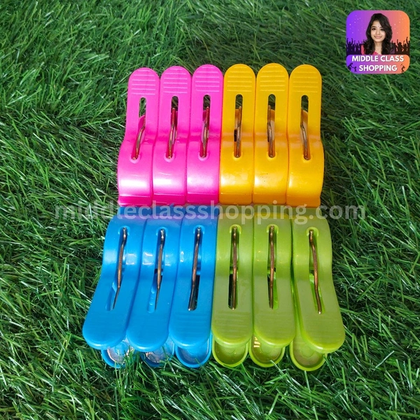 Reya Big Sized High Quality Curvy Deisgined Multicolor Plastic Clothline Clips (12pcs) MC295