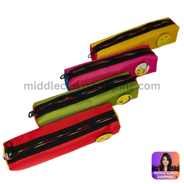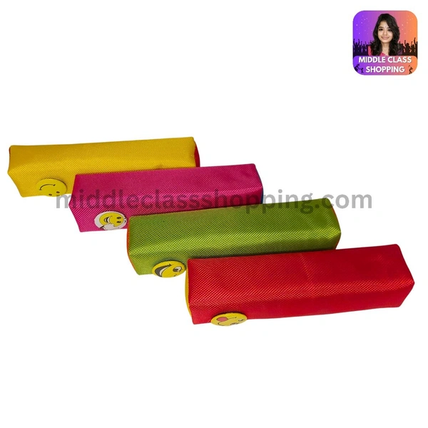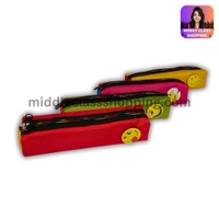 Solid Colored Pencil Pouch With Smiley Badge (19.3×5.5cms) MC312