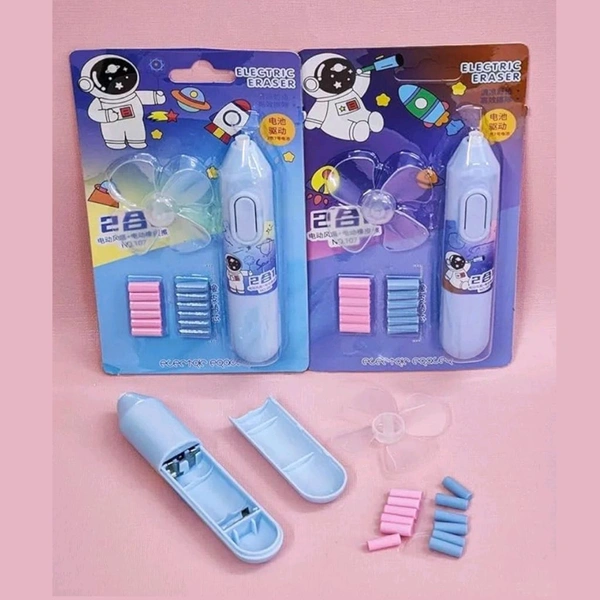Trending Super Cute Kids Creativity Boosting Battery Operated Electric Eraser With Fan And Free 12 Erasers (AAA Battery) MC906