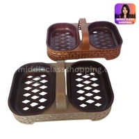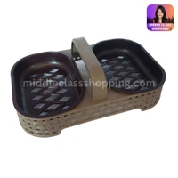 Wooden Patterned Double Sectional Water Dispensable Soap Stand With Handle MC277